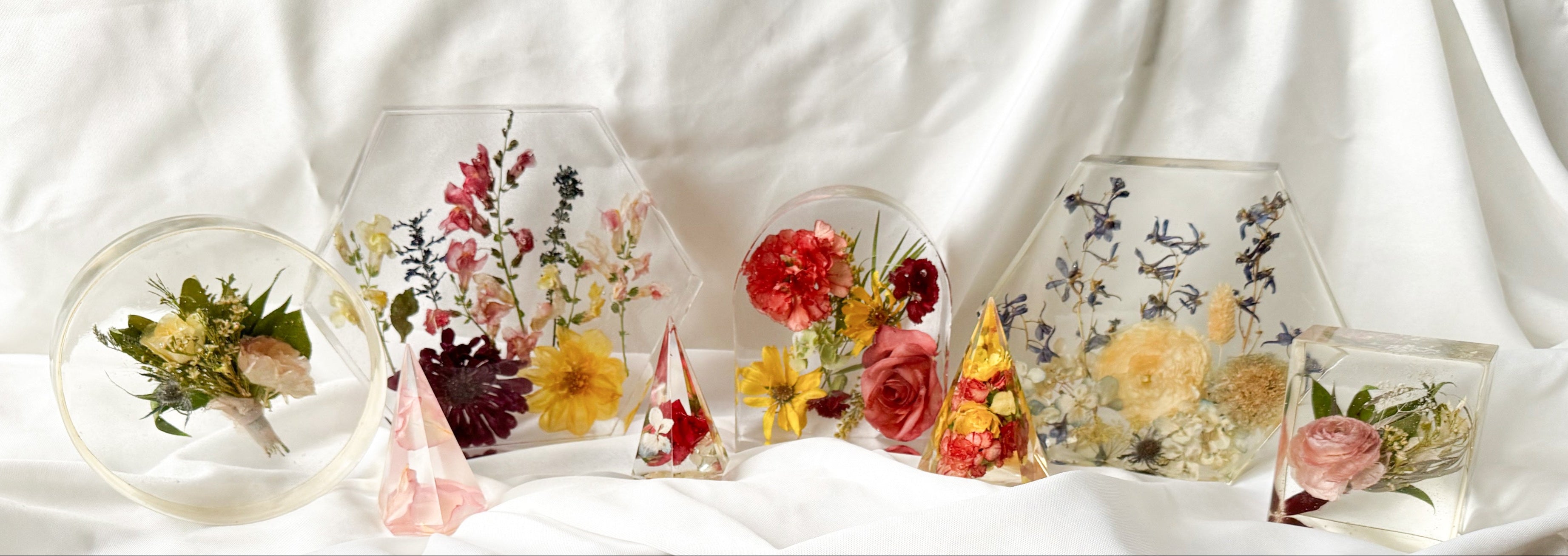 You are the heart of this! We take your memories and make them last in custom artwork that's one of a kind. Your wedding becomes timeless through these gorgeous pieces. A wedding day lasts a lifetime, rather than 24 hours. You become the forever bride by having us make your flowers into stunning pieces that become the perfect memory of your perfect day. Send us your flowers after your event, we do the work, and you get back timeless pieces to enjoy. Trust us with those special blooms and you'll be so happy!