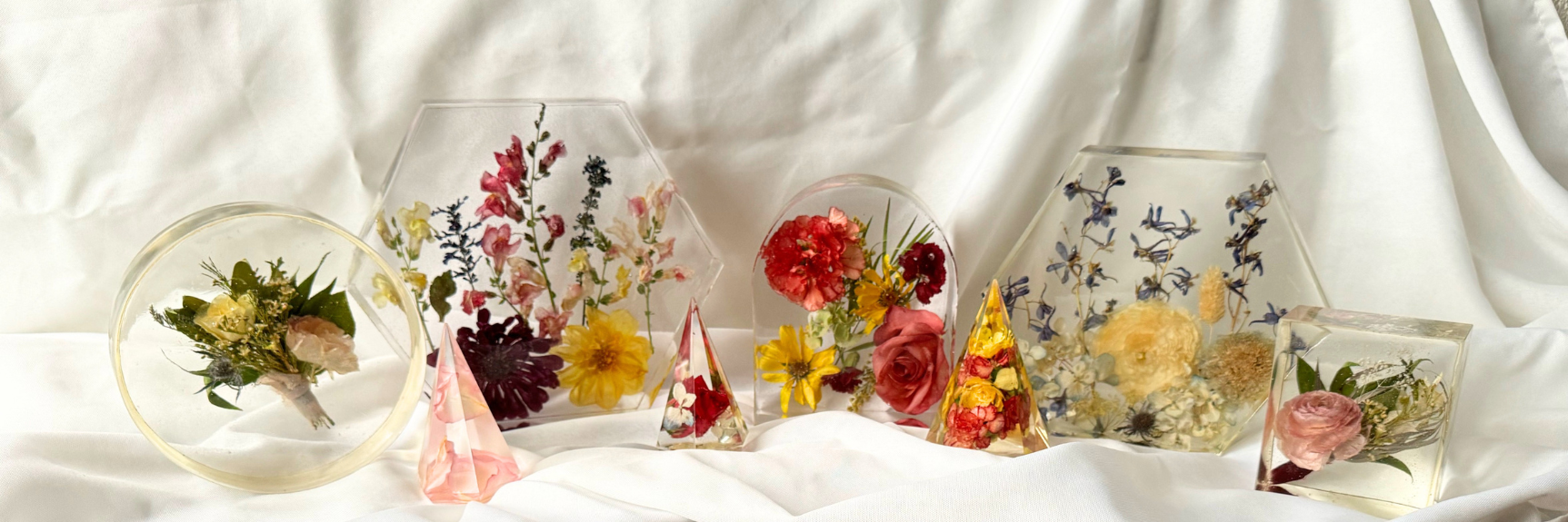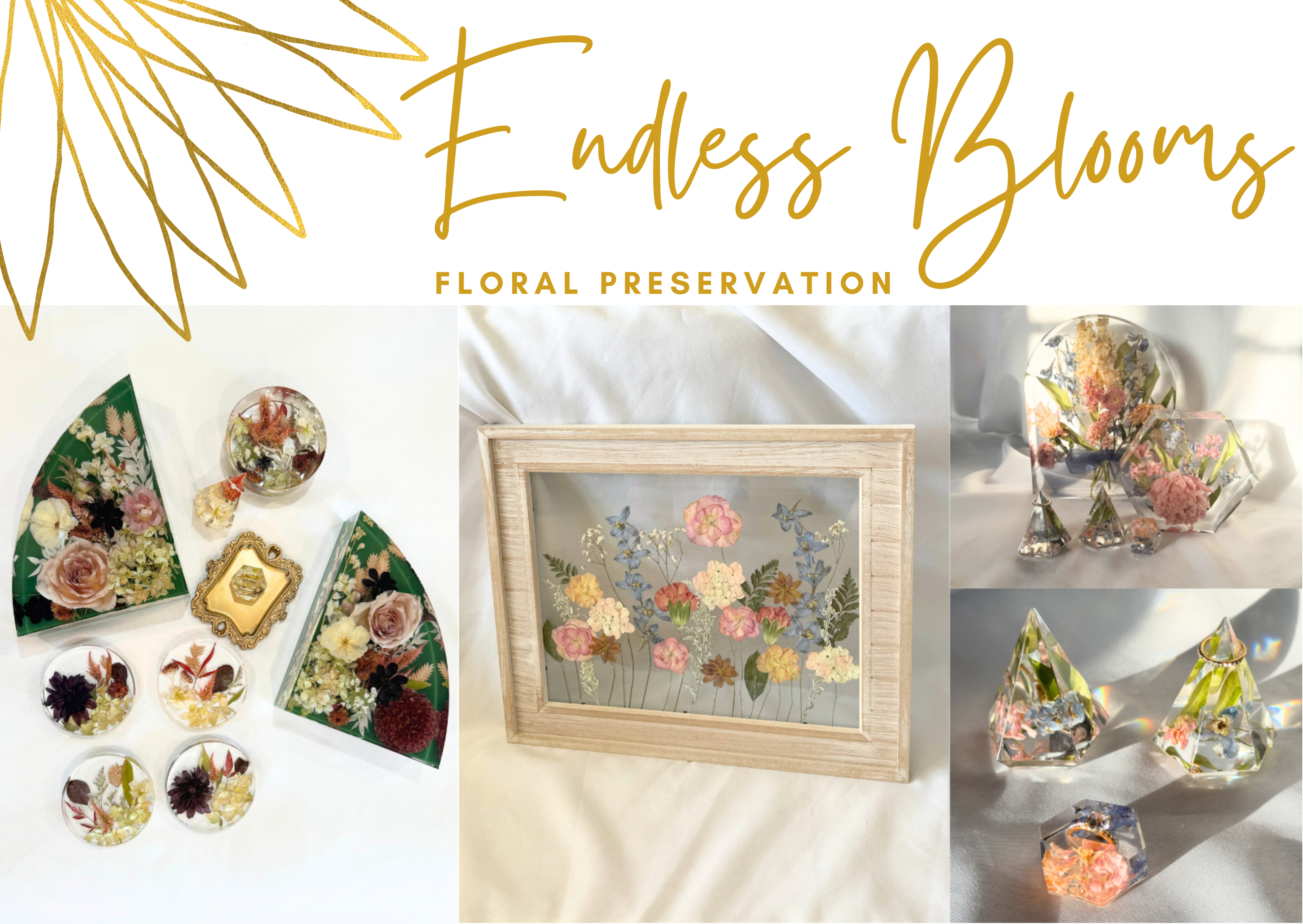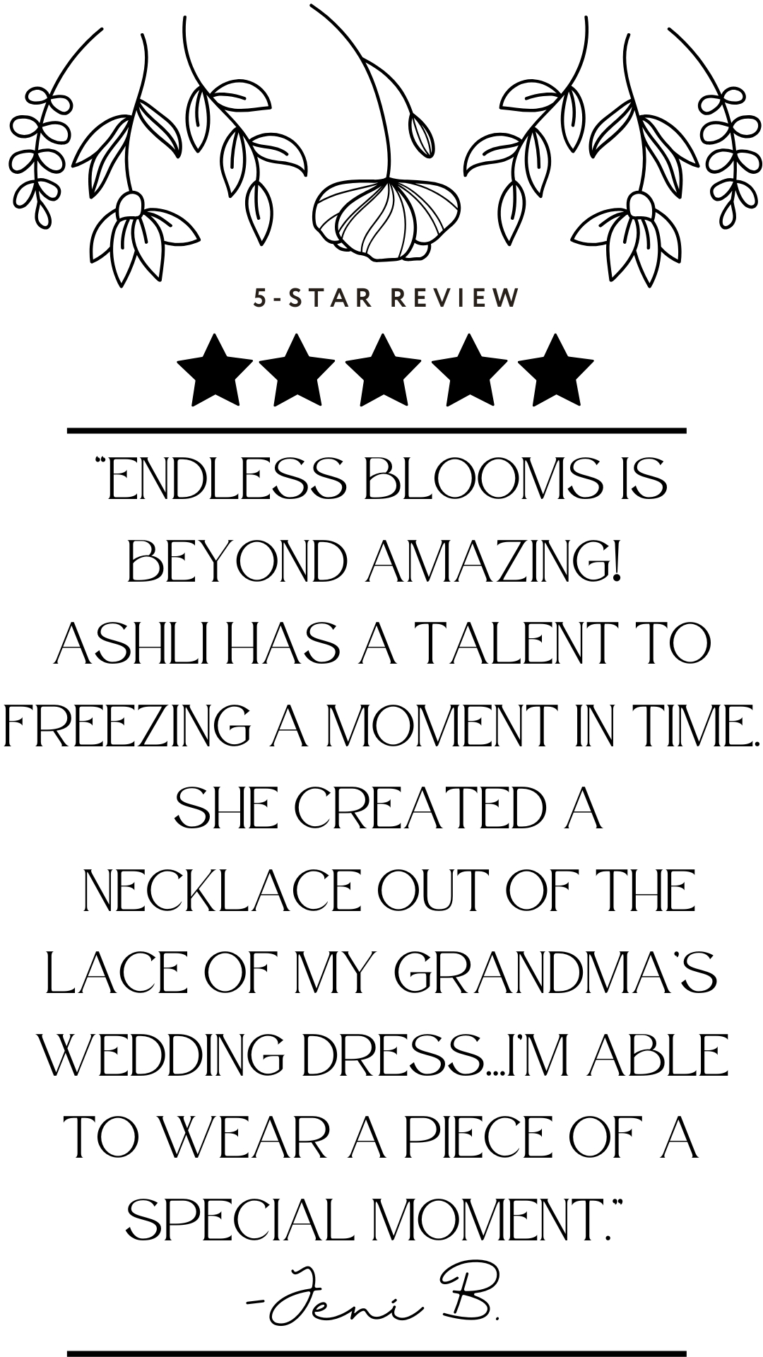 Be the bride you've always dreamt of! You send us your flowers and we make them into stunning items for you to keep like a pressed flower frame, resin block, jewelry, and more! We take your memories and make them last in custom artwork that's one of a kind. Your wedding becomes timeless through these gorgeous pieces. A wedding day lasts a lifetime, rather than 24 hours. You become the forever bride by having us make your flowers into stunning pieces that become the perfect memory of your perfect day. Trust us with those special blooms and you'll be so happy you did!
