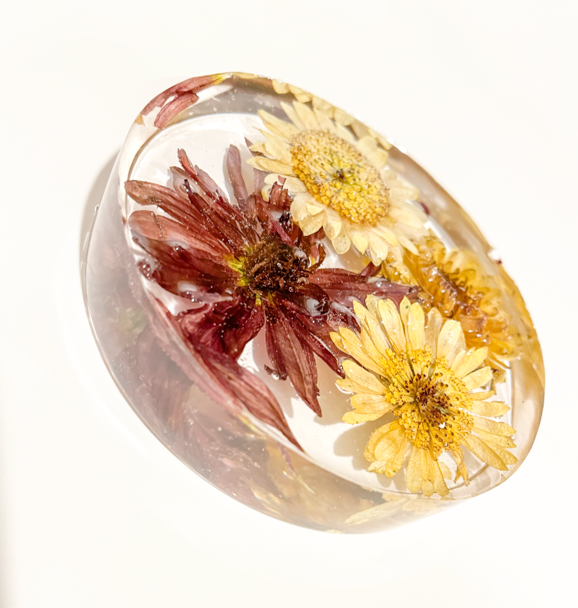 You send us your flowers, and we make them into this beautiful product. You'll receive back a priceless custom heirloom made from your gorgeous blooms.