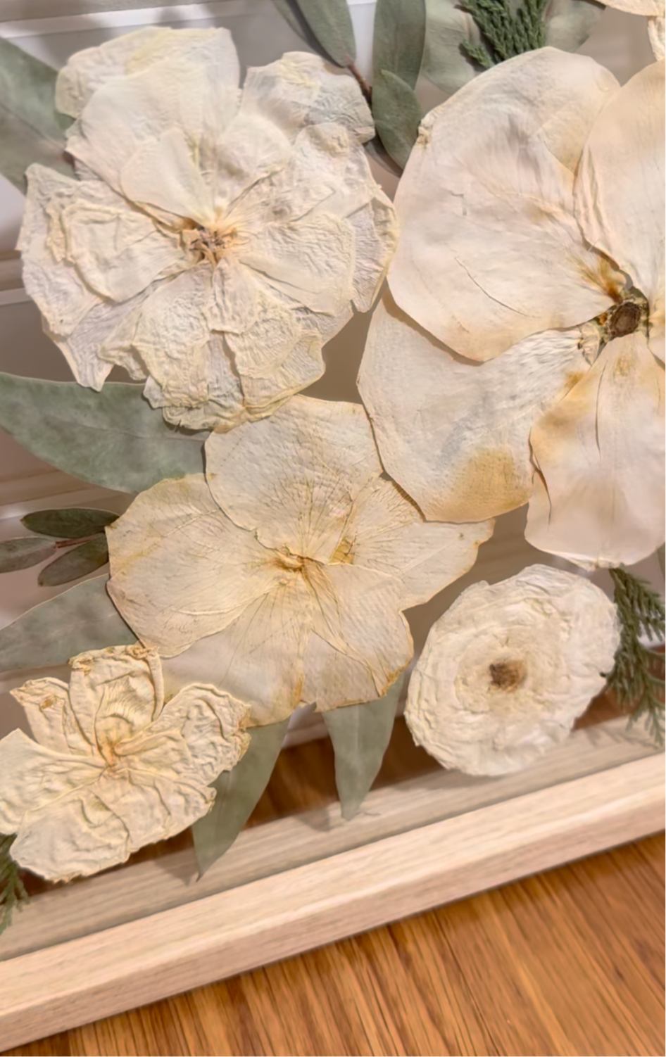 You send us your flowers, and we make them into this beautiful product. You'll receive back a priceless custom heirloom made from your gorgeous blooms.